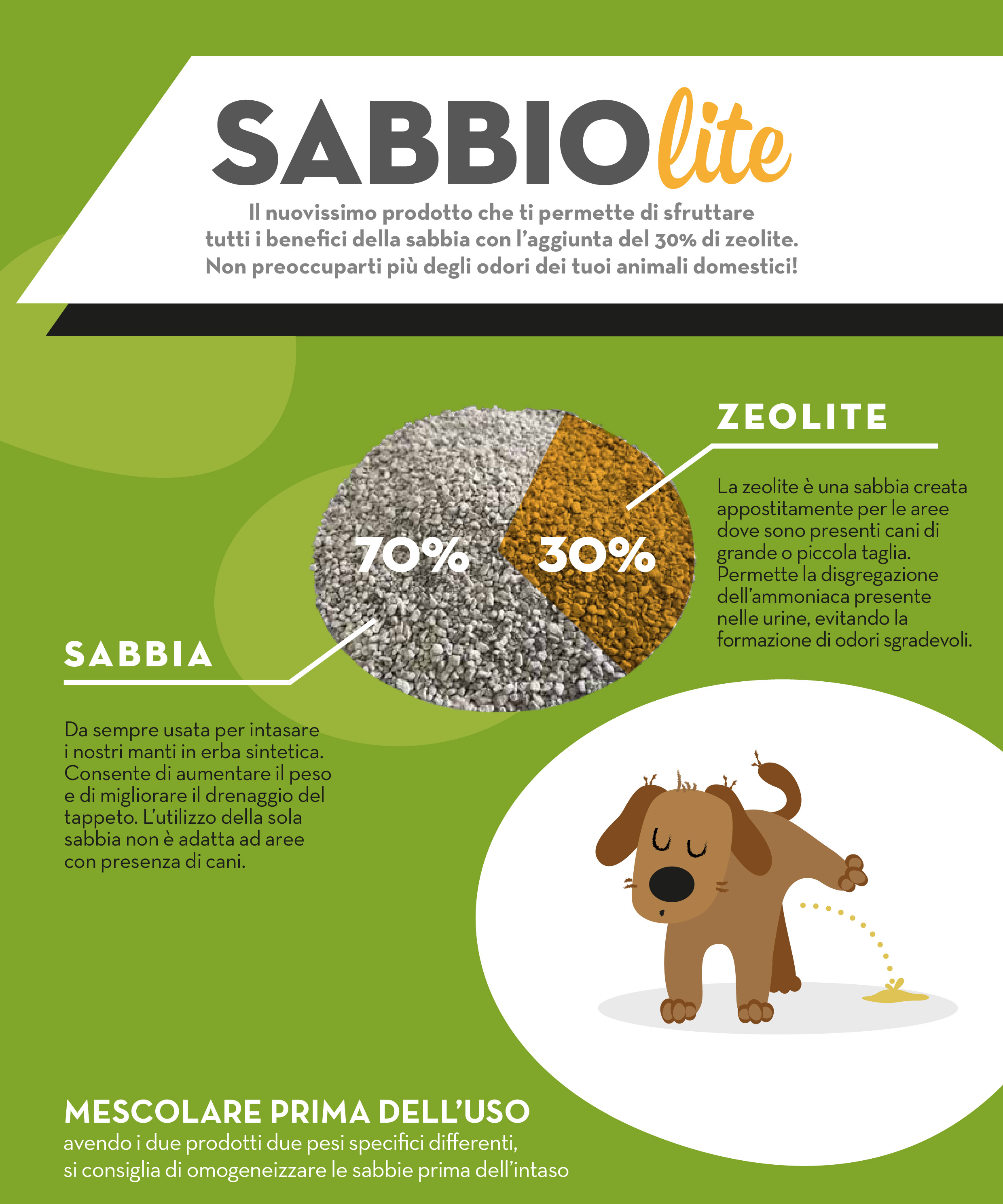 ZEOGREEN, MAI PIÙ CATTIVI ODORI NEL TUO GIARDINO IN ERBA SINTETICA La granulometria compresa tra 0,7 e 2 mm è considerata la migliore perché le dimensioni maggiori non penetrerebbero tra le fibre dell'erba sintetica, mentre granuli di dimensioni inferiori non sarebbero in grado di svolgere efficacemente la loro funzione. Lo spargimento può essere...