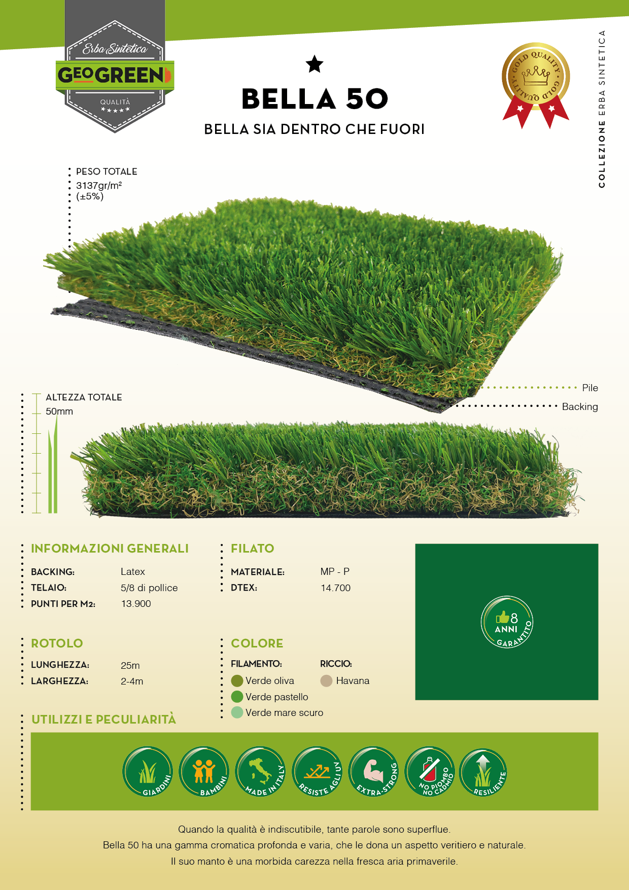 Erba sintetica "Bella 50 mm" LUNGHEZZA PERSONALIZZABILE