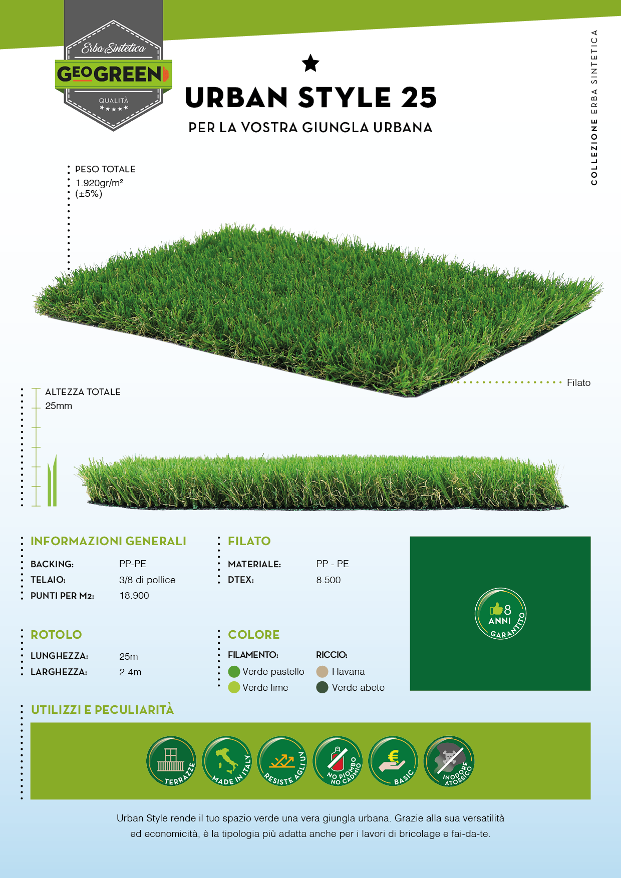 Erba sintetica "Urban Style 25 mm" LUNGHEZZA PERSONALIZZABILE